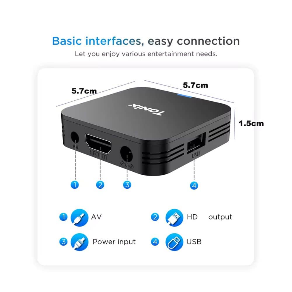 La **Tanix TX1 TV Box** se establece como un centro de entretenimiento digital de alto rendimiento, impulsado por el sistema operativo **Android 10.0**, que garantiza una interfaz de usuario fluida, navegación rápida y compatibilidad con las últimas aplicaciones. En su núcleo, aloja un procesador **Quad-Core ARM Cortex-A53** junto con una unidad de procesamiento gráfico **(GPU) G31 MP2**. Esta combinación de *hardware* asegura un rendimiento ágil para la reproducción de contenido multimedia, juegos ligeros y la ejecución de aplicaciones, ofreciendo una experiencia estable y de baja latencia. - Capacidades Multimedia de Ultra Alta Definición (4K HDR 3D)